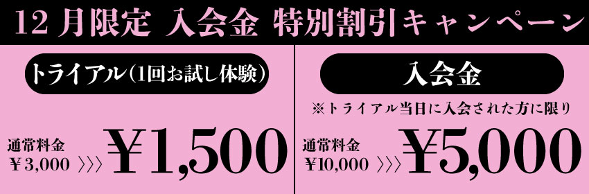 ※トライアル(体験)当日のご入会に限り、入会金を50%offとさせていただいております。