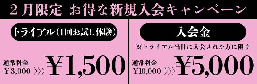※トライアル(体験)当日のご入会に限り、入会金を50%offとさせていただいております。